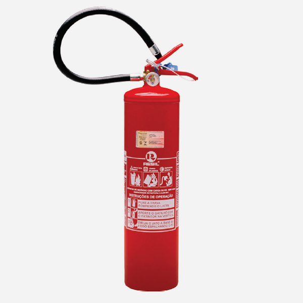 Extintor de incêndio com carga de pó ABC (fosfato mono-amônico).