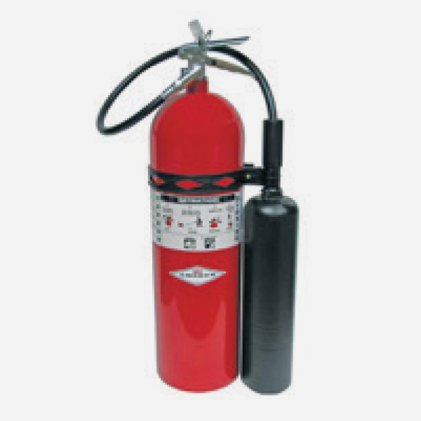 Extintor de incêndio com carga de dióxido de carbono (CO2).