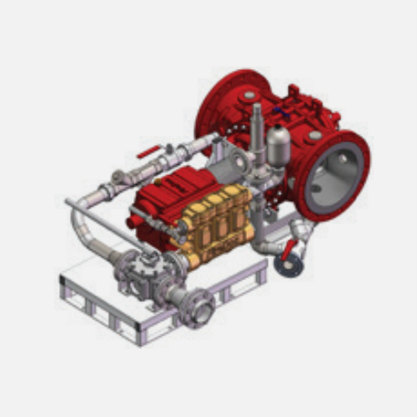 O FireDos é totalmente integrado. É composto por um motor hidráulico e uma bomba de pistões para injeção e dosagem do LGE no sistema de combate a incêndio.
