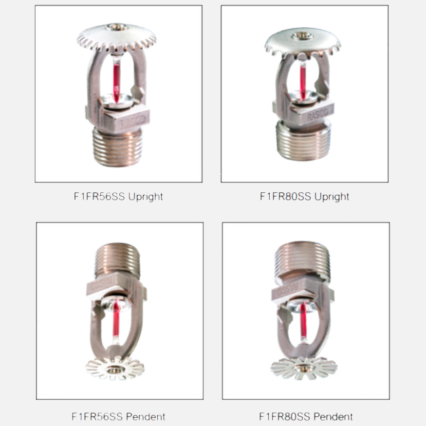 Os sprinklers da série F1FR-SS são sprinklers de resposta rápida destinados a instalação em conformidade com a NFPA 13. Os sprinklers são listados cULus e aprovados FM como sprinklers resistentes à corrosão e apresentam corpo, deflector e tampa feitos de liga de aço inoxidável 316. Os sprinklers modelo da série F1FR-SS incluem sprinklers upright e pendentes.